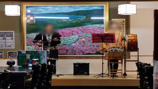 沖縄民謡を聞きながら、海ぶどう、ゴーヤチャンプルー、そうめんチャンプルーなど本場の沖縄料理を堪能しました。
